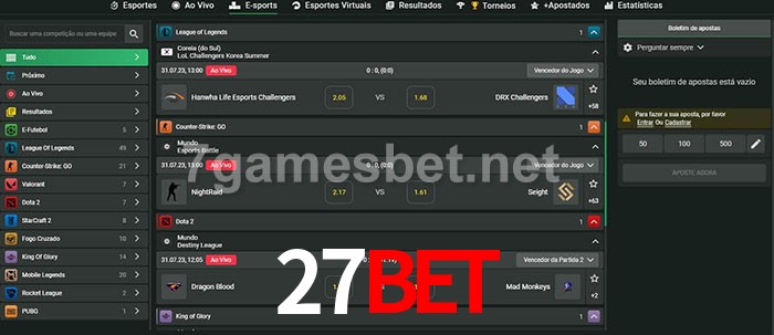 A aposta 27bet oferece aos jogadores a experiência mais conveniente de apostas em eSports!